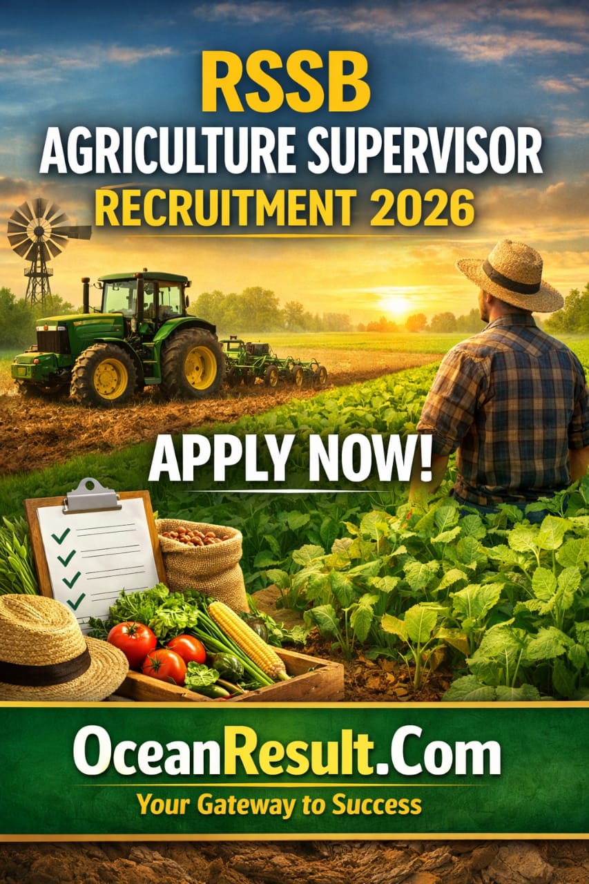 The Rajasthan Staff Selection Board (RSSB) has announced the much-anticipated Agriculture Supervisor Recruitment 2026 to fill 1,100 posts of Agriculture Supervisor under Advertisement No. 03/2026. This recruitment drive offers a significant opportunity for candidates with agricultural background and relevant qualifications to secure a government job in the agriculture department of Rajasthan.