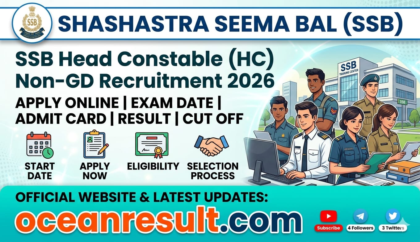 Post Details : Sashastra Seema Bal (SSB), Has Released The Notifications On The Official Website For The Recruitment Of Head Constable (Steward, Communication, Electrician, Veterinary) Posts. This Recruitment Is For 233 Positions. SSB Application Form Has Started From 21 March 2026 & The Candidates Can Apply Until 20 April 2026. Minimum Age Required Is 18 Years & The Maximum Age Is 25 – 27 Years (Post Wise). Candidates Must Check The Complete Details For SSB Head Constable Non-GD Recruitment 2026. Link Are Provided Below.